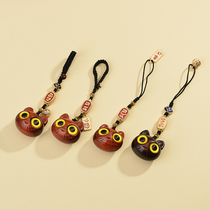 アニメかわいい猫檀木男女国潮風バックパックストラップ携帯チェーン自動車キーストラップ