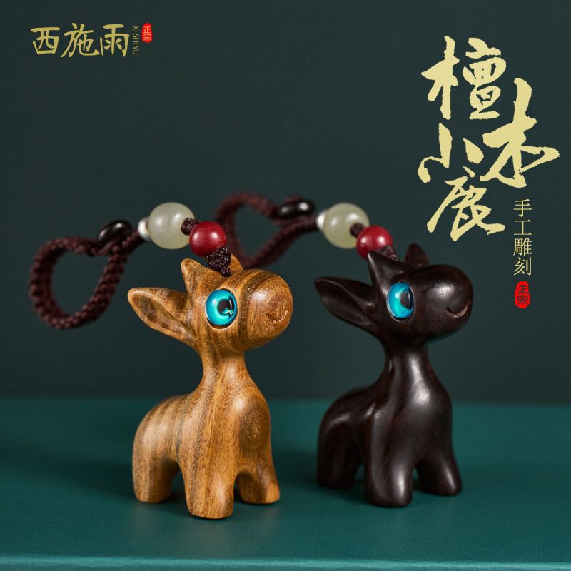黒檀の木の一路の自動車のキーホルダーは男性の緑檀の鹿を掛けてかわいい携帯のチェーンを掛けて女性を飾ります。