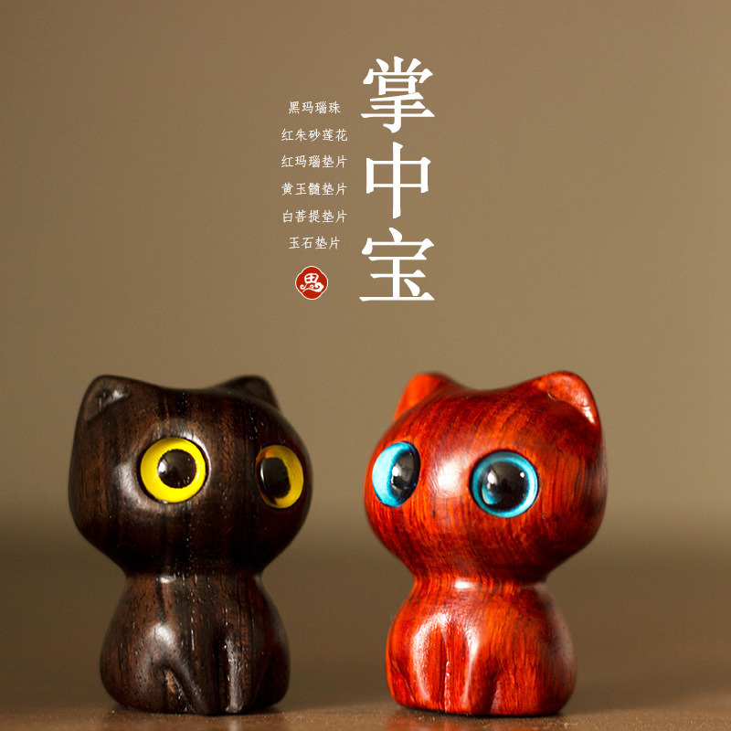 檀木の猫のキーホルダーの個性的なアイデアins風の小さい大衆の紫檀のかばんはusbメモリの携帯電話の男女のカップルを包みます。