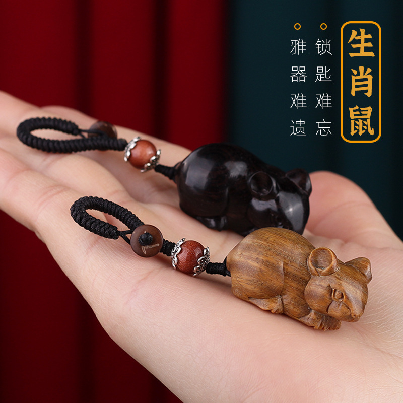 木の言葉緑檀紫光檀創意国風十二生肖かわいい漫画のネズミの車のキーホルダーのペンダント