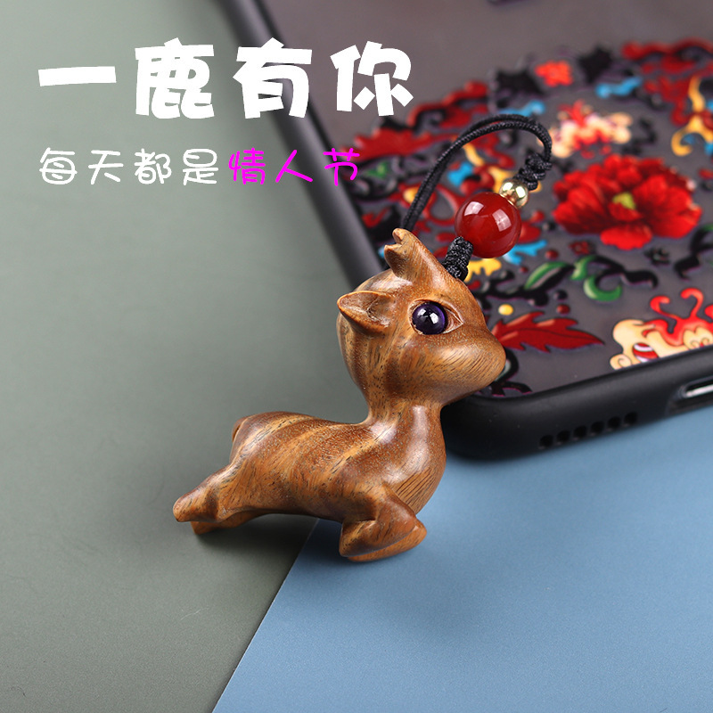 鹿一路檀木小鹿の携帯チェーンがあります。