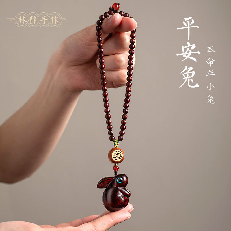 ウサギの年の自動車のペンダントの車内は檀木の生肖のウサギの男性の女性の車のバックミラーの装飾品を飾ります。