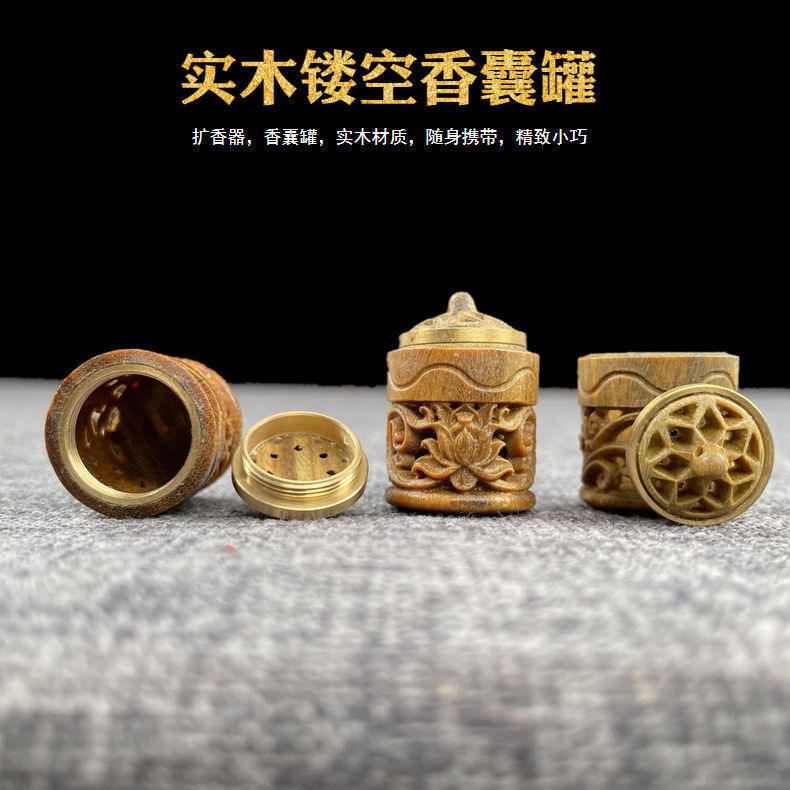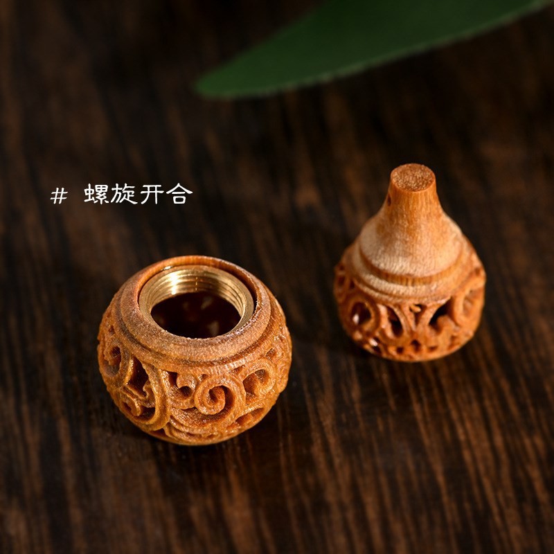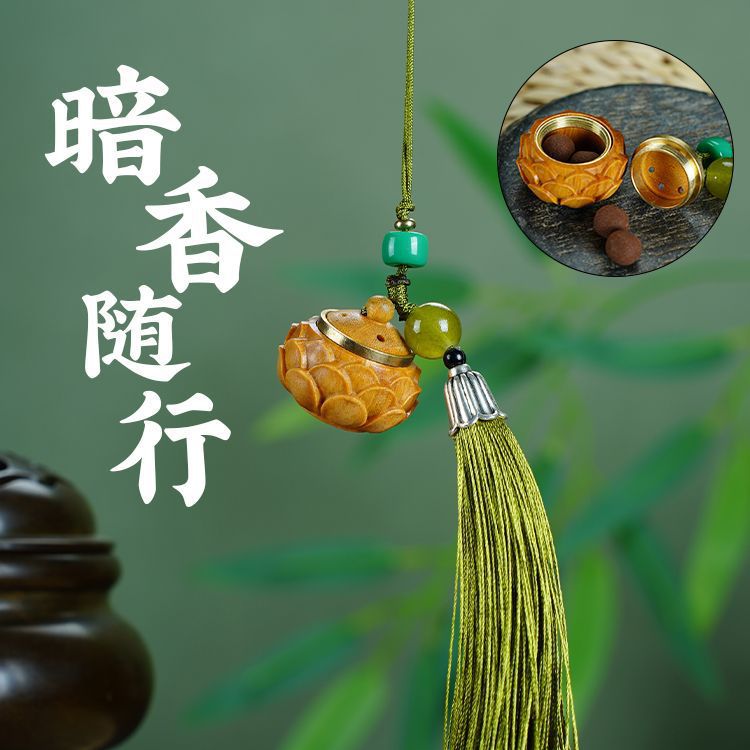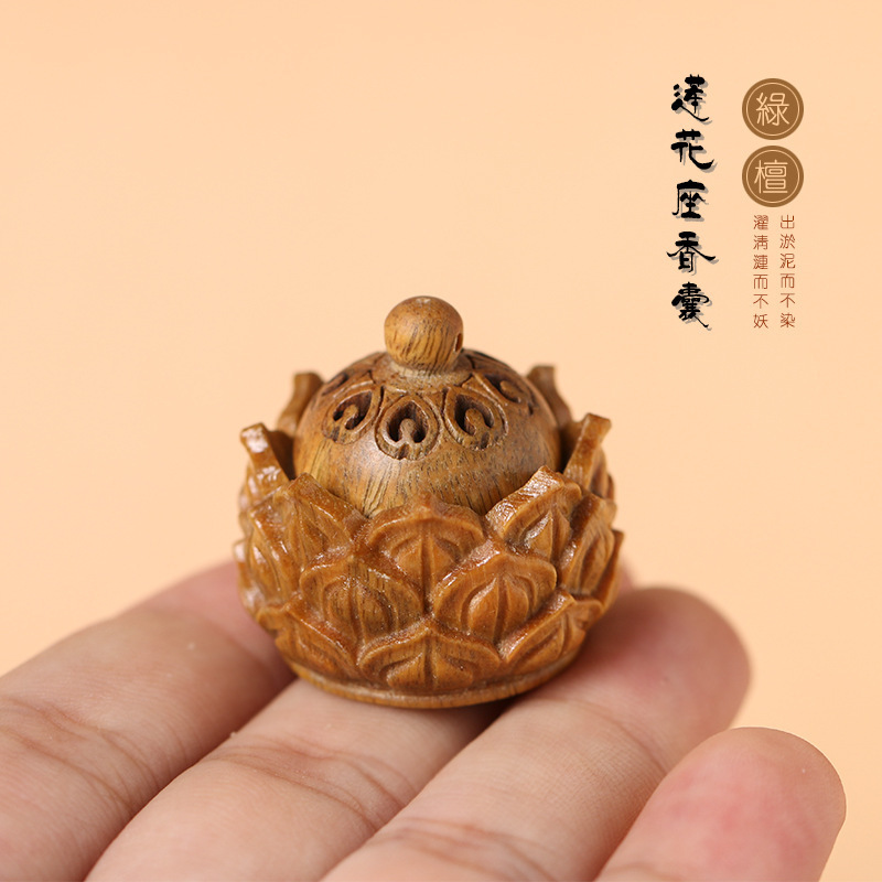 緑檀木古風蓮花座彫刻香嚢携帯香薫ペンダントdiyキーホルダーアクセサリー