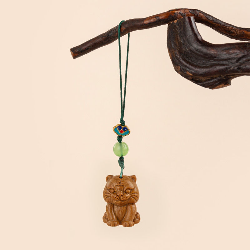 22小T虎緑檀木抜き木質香嚢生肖虎拡香器文遊び彫刻バッグストラップ自動車