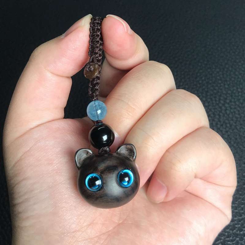 萌え系黒檀緑檀紅檀木立体漫画子猫個性カップル男女キーホルダー包郵便