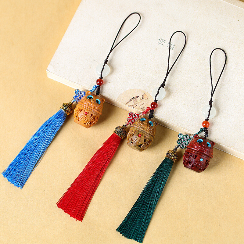 緑檀の木彫りネットの赤い羊は羊の携帯電話のチェーンを掛けました。