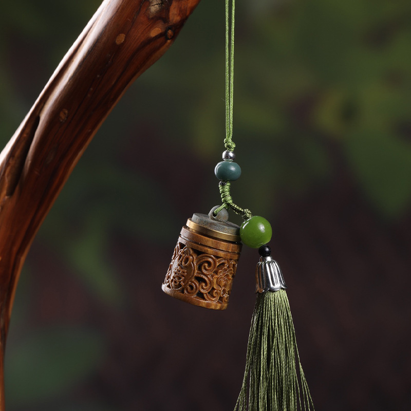緑檀透かし彫りの香嚢ペンダント拡香器檀香木小提灯流蘇自動車ストラップ携帯チェーン創意ペンダント
