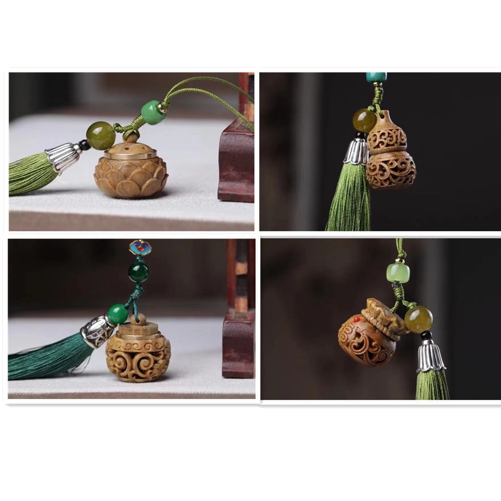 緑檀木質水仙葫芦袋蓮花香嚢拡香器車内カバン桂花香料ペンダント