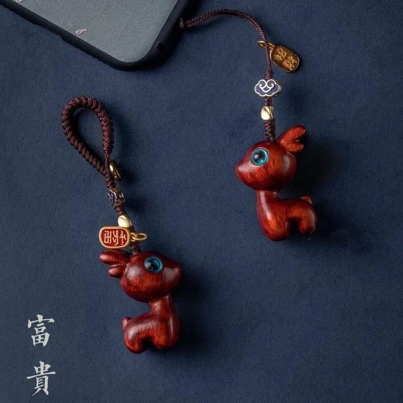 一路紫檀木小鹿自動車のキーホルダー