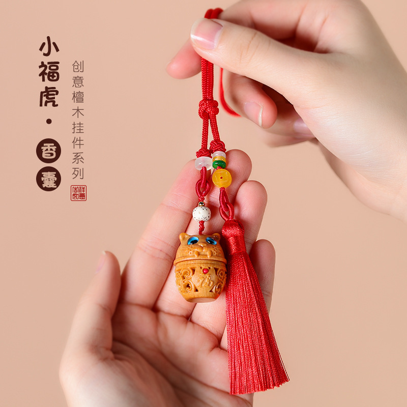 緑檀木彫り復古透かし彫り小虎香嚢アクセサリー自動車ストラップ