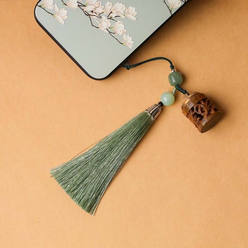 緑檀香嚢キーホルダーストラップクリエイティブ携帯電話u盤掛けロープ古風自動車チェーンキーリングバッグ掛け飾り