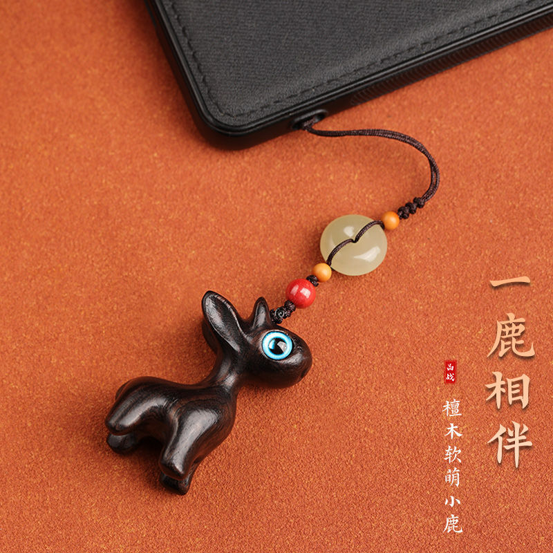 道中檀木小鹿自動車のキーホルダーはかわいい小清新携帯電話のペンダントです。