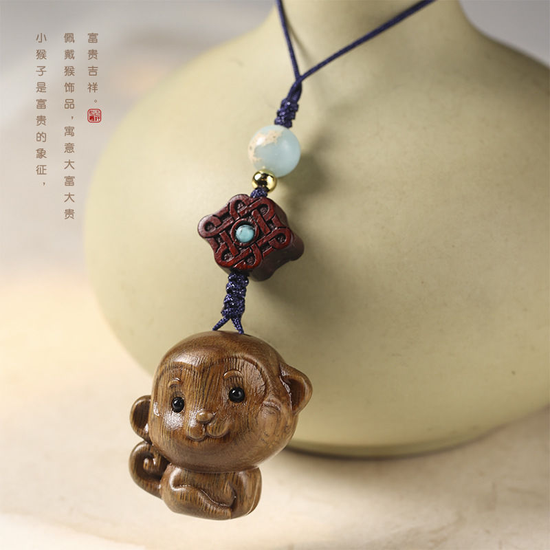 職人心シリーズ!! かわいいですね。檀木彫刻十二生肖猿携帯チェーン自動車キーペンダント