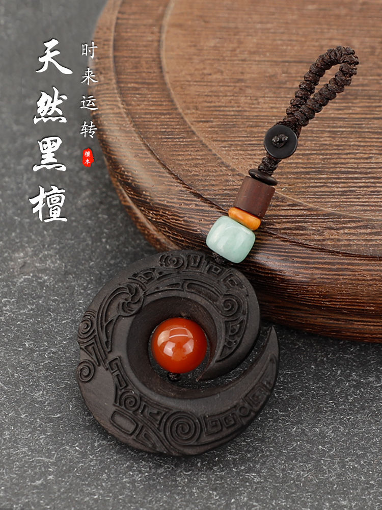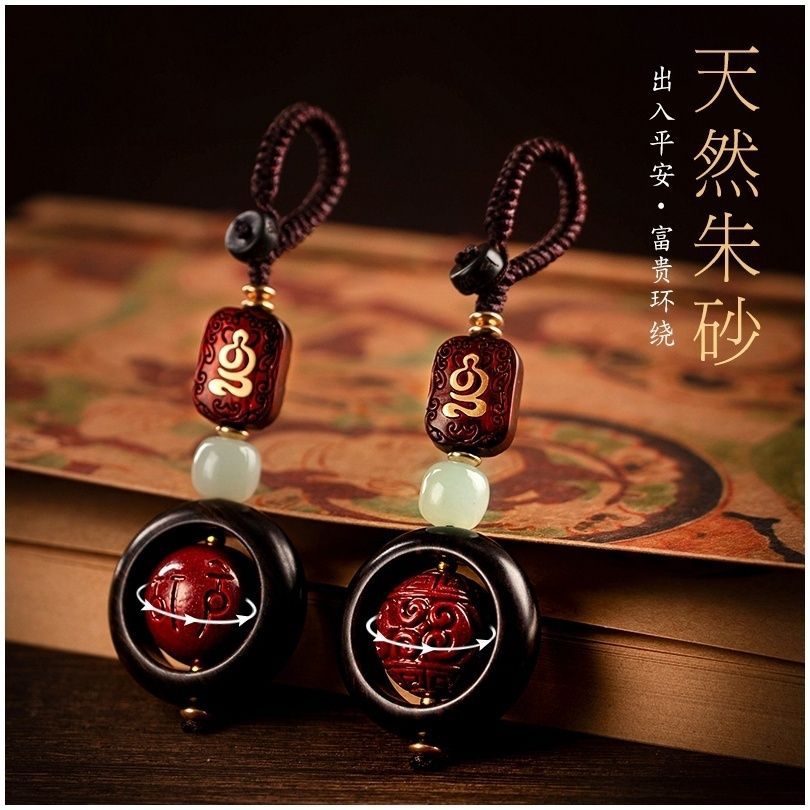 朱砂転運珠檀木自動車キーホルダーペンダントカップル経文手編みロープチェーンペンダントアクセサリー男女高級