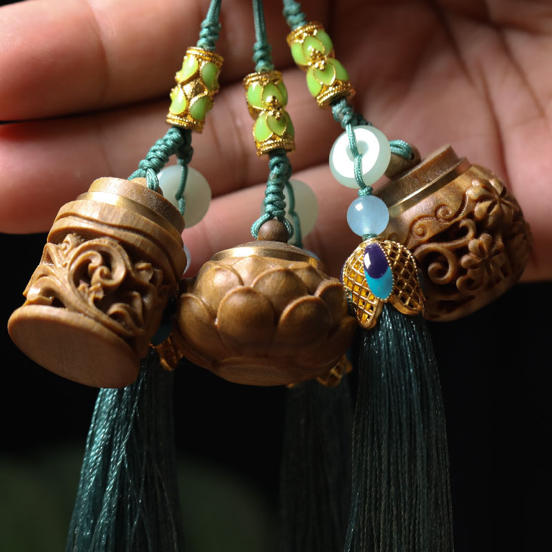 緑檀木の古風の透かし彫りの香嚢の玉の香丸の自動車の鍵はペンダントをつけて香薫の携帯電話のチェーンのペンダントを身につけます。