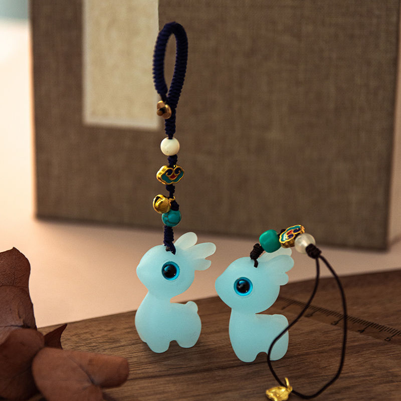 夜光石の鹿のキーホルダーのペンダントの創意的な手作りの編み縄の自動車のキーチェーンの携帯電話のuディスクのカバンのペンダント