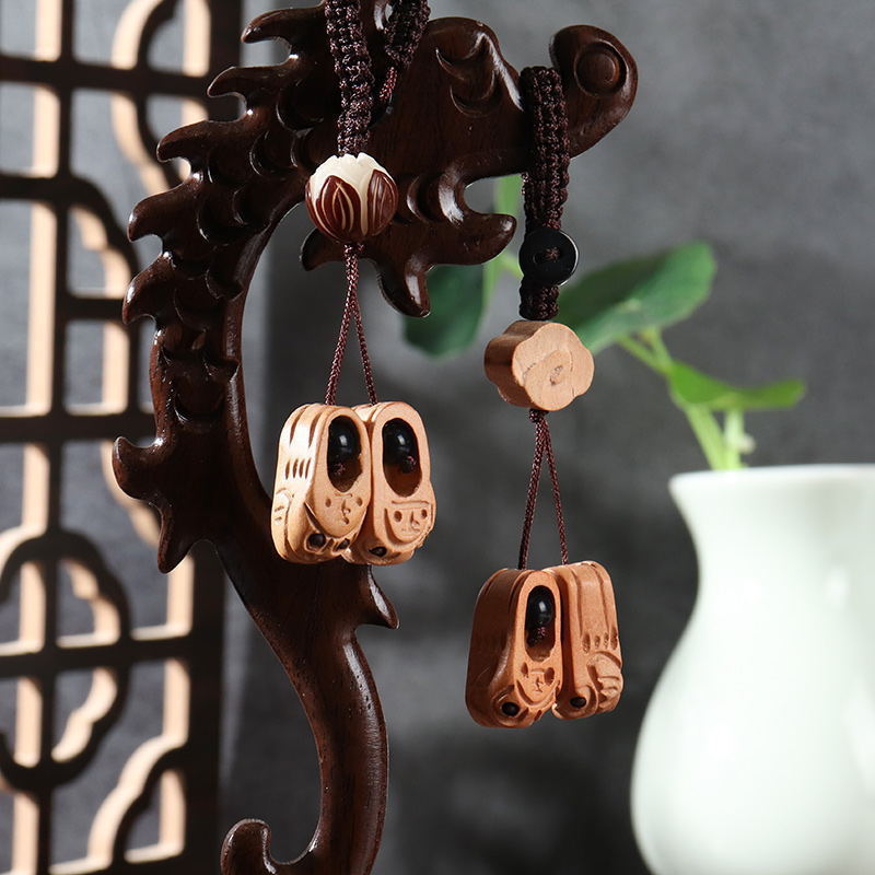 桃木虎頭靴キーホルダー自動車ストラップ携帯チェーンストラップ男女通用虎頭靴対金