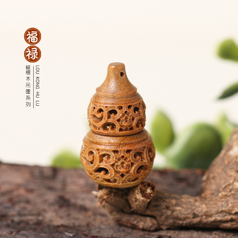 緑檀透かし彫りDIY工芸彫刻瓢箪香嚢木拡香瓶ペンダント
