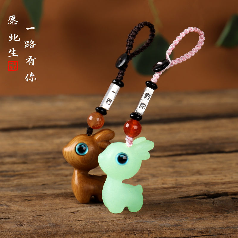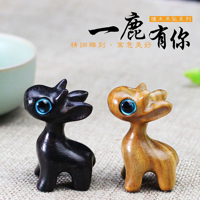 メーカー直販黒檀緑檀小置物DIY携帯チェーンキーホルダーペンダント木彫り工芸品一鹿あなたがいます。
