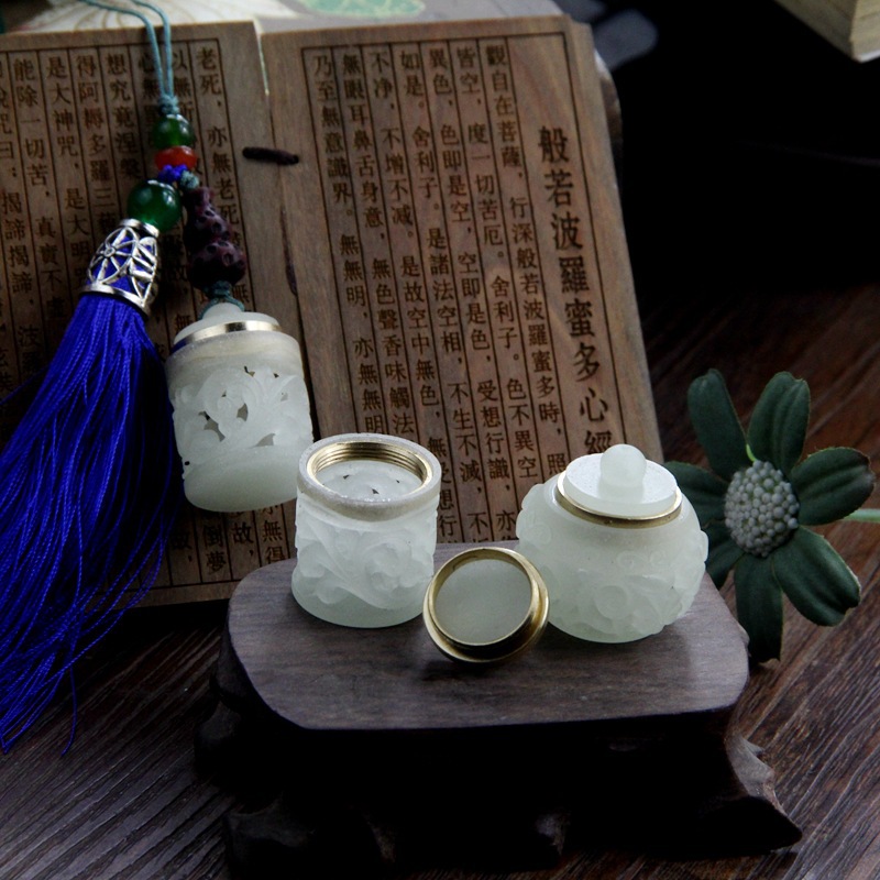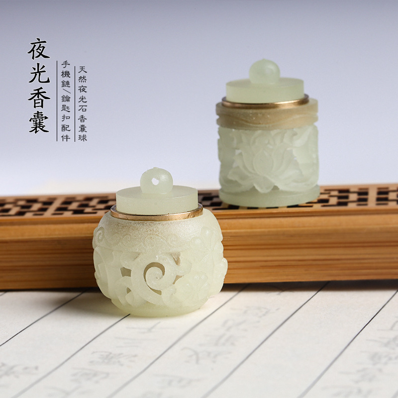 夜光石透かし彫り香嚢ストラップdiyアクセサリー携帯チェーンキーホルダーペンダントスパイラル口香珠箱