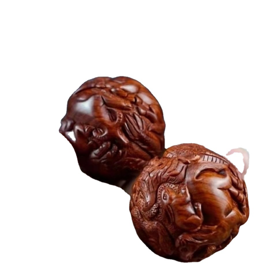 ラオス黄花梨十二生肖ボールハンドボールマッサージボール彫刻文游フィットネス実木ハンドル