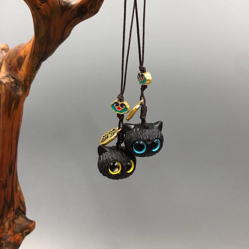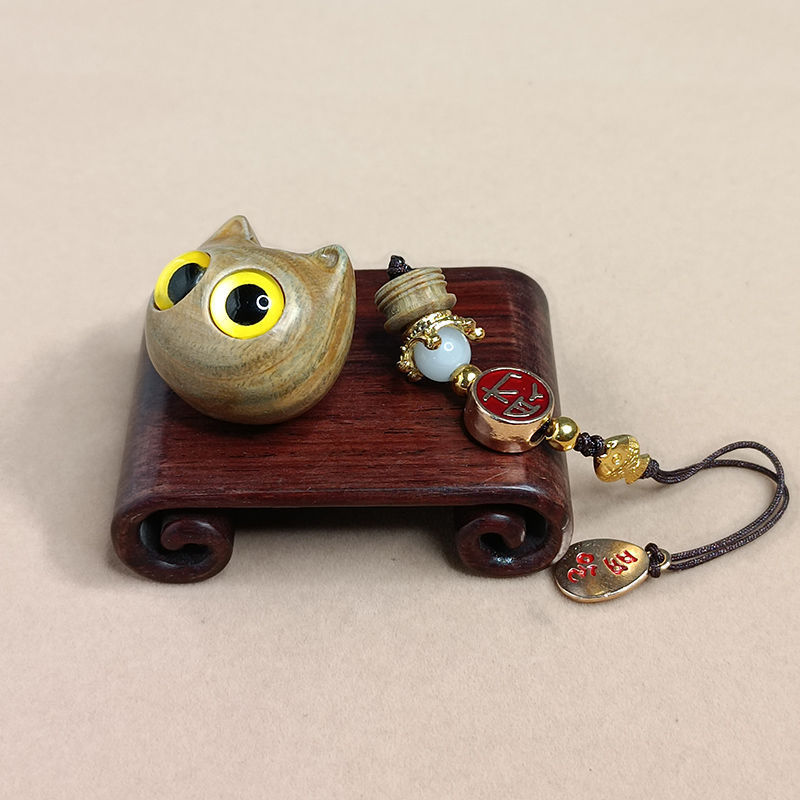 緑檀木の王冠の猫の透かし彫りの香の袋のペンダントの創意の拡香器の携帯電話のチェーンのカバンのペンダントのかわいい装飾品
