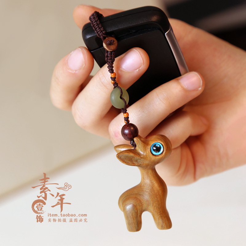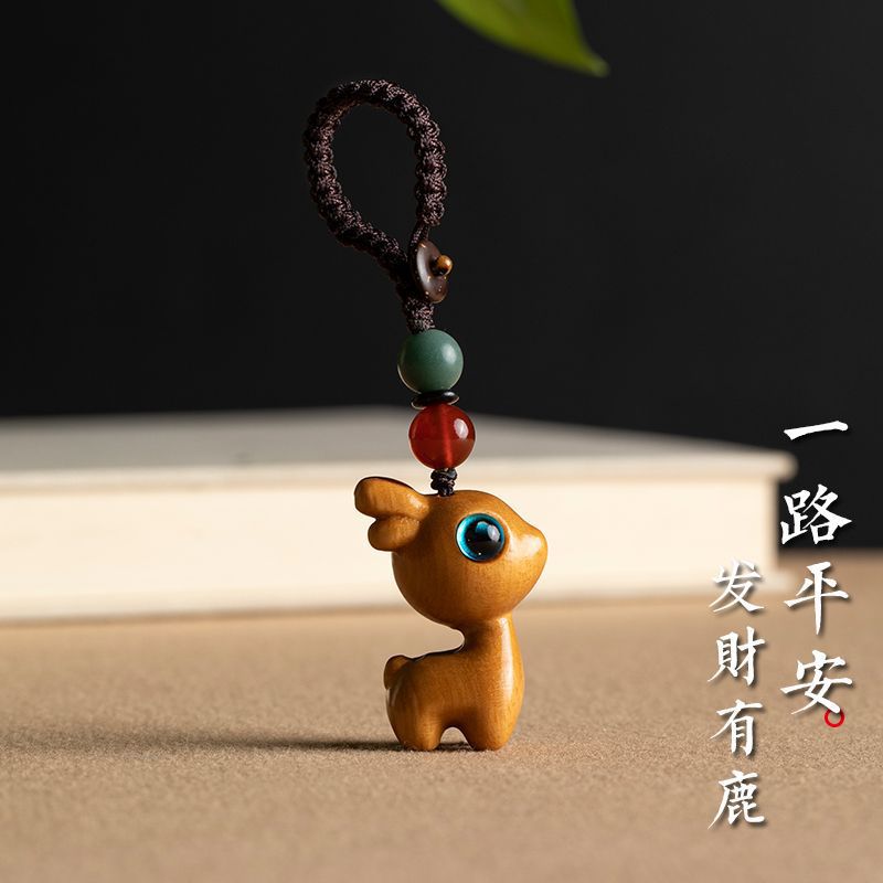 道中檀木小鹿自動車キーホルダー携帯電話ペンダント男女カップル古風飾りチェーン