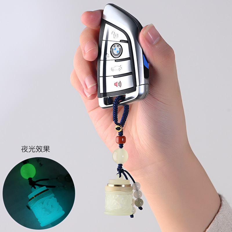 新創旋夜光石透かし彫り香箱性意口蓮花個Eサザエストラップ装飾発光香嚢自動車キー