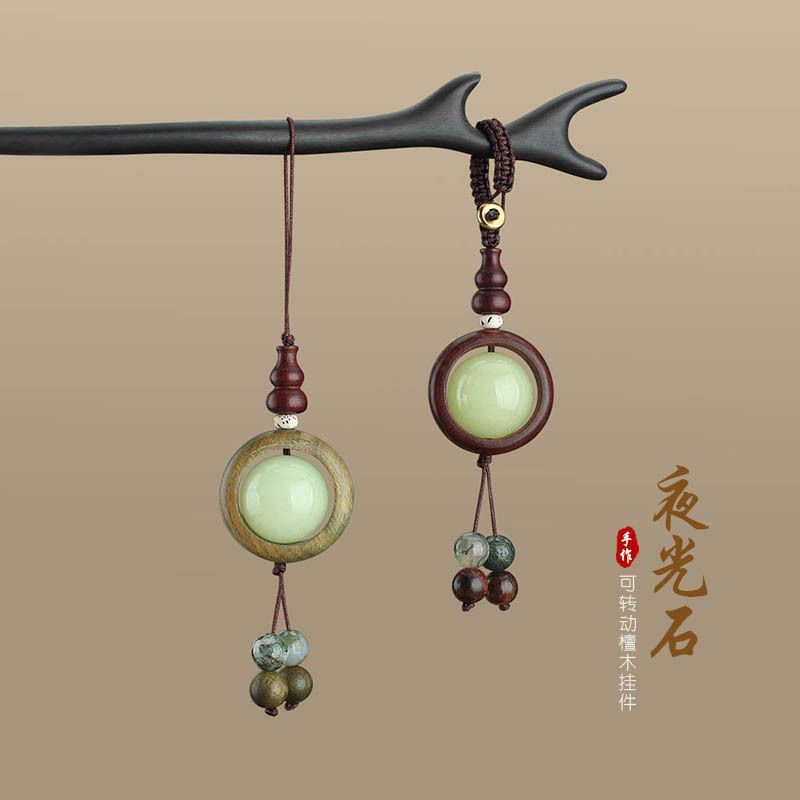 レトロな檀木の携帯電話のストラップの自動車のキーホルダーのペンダントの夜光の石の珠のヒョウタンは装飾品を掛けます。
