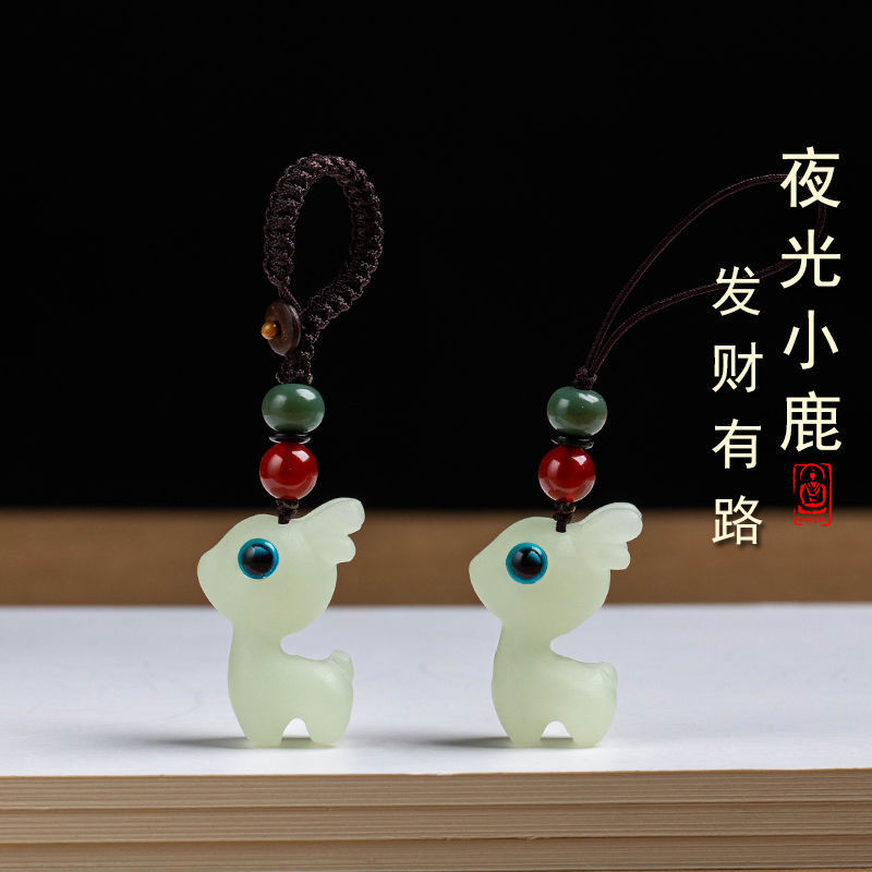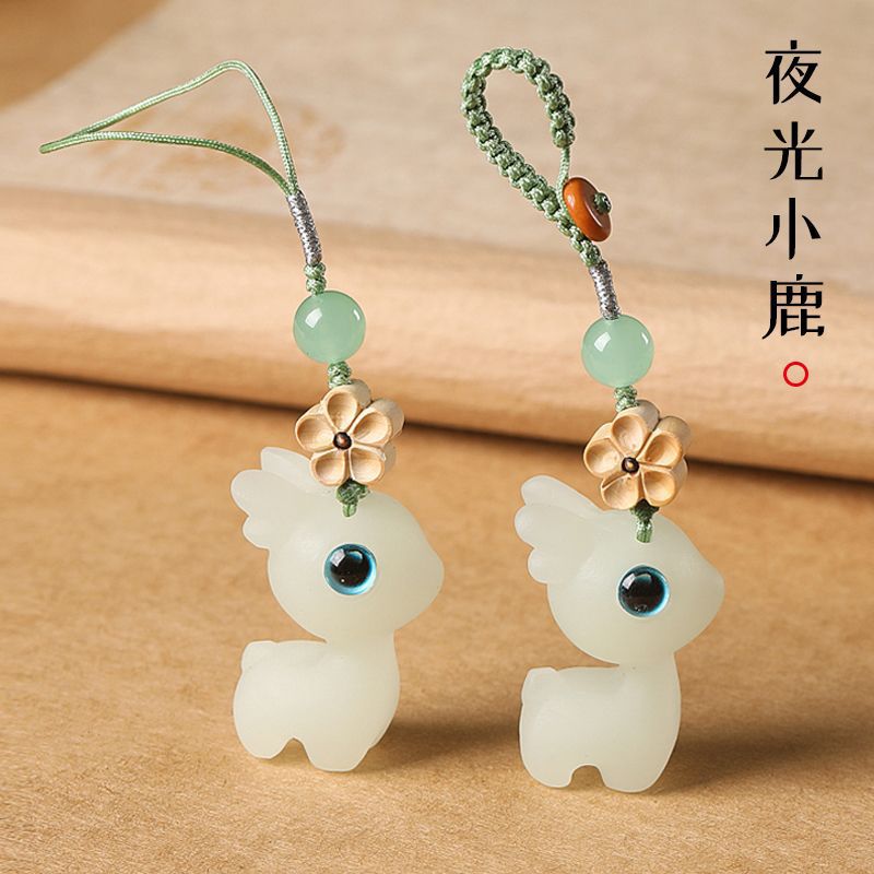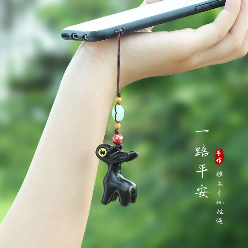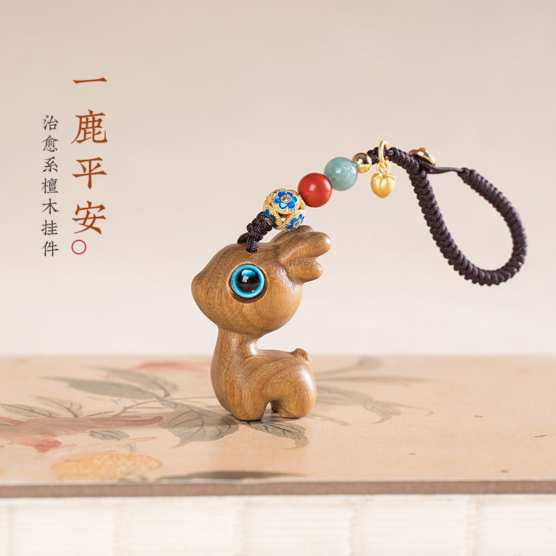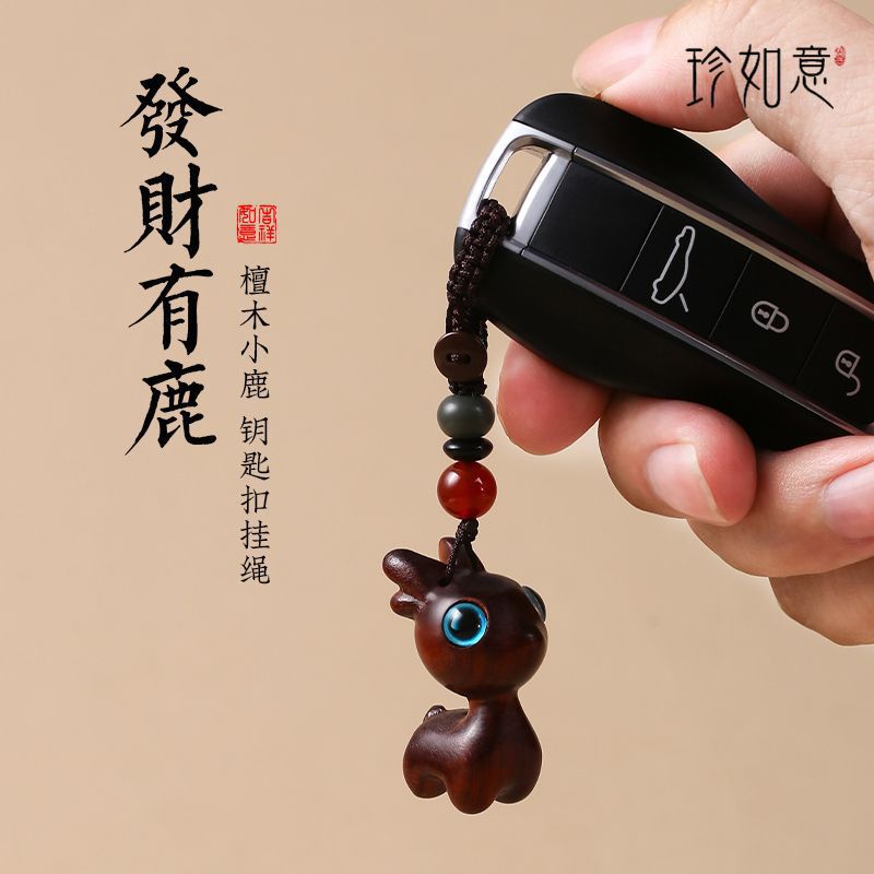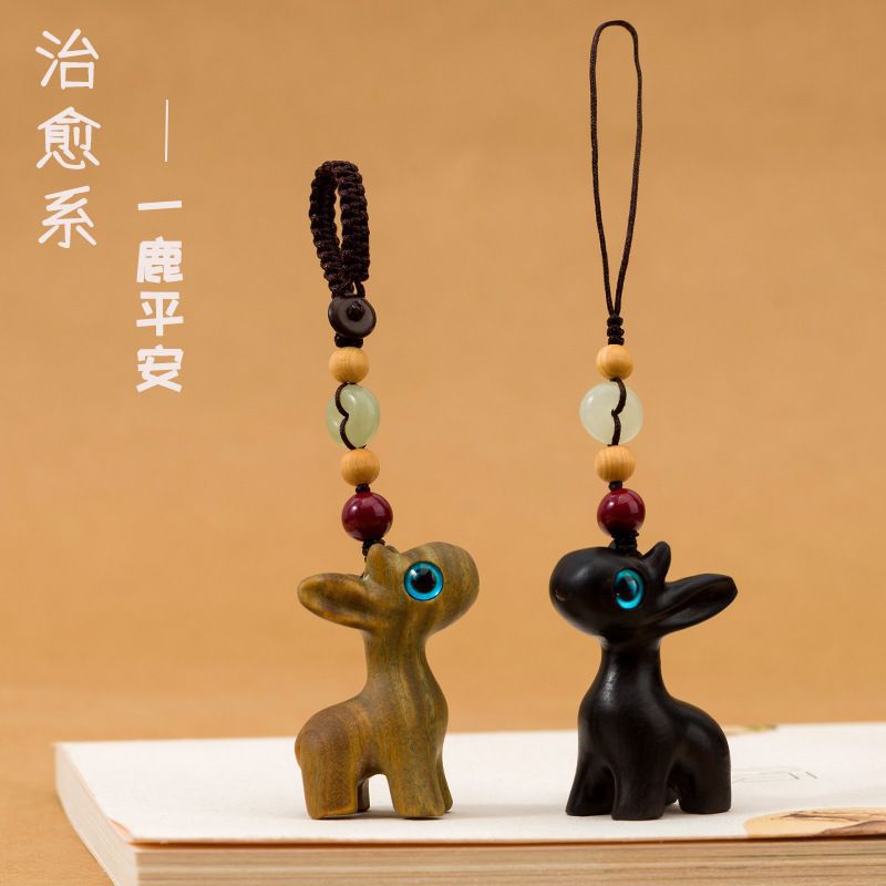 珍如意一路檀木小鹿自動車キーホルダー携帯電話ペンダント男女カップルペンダント