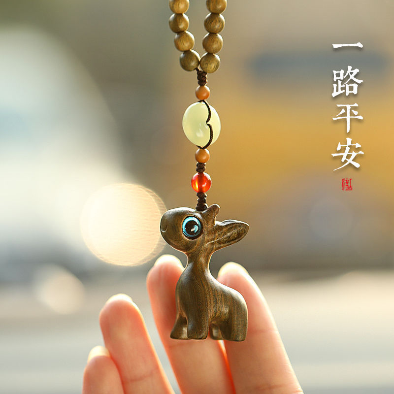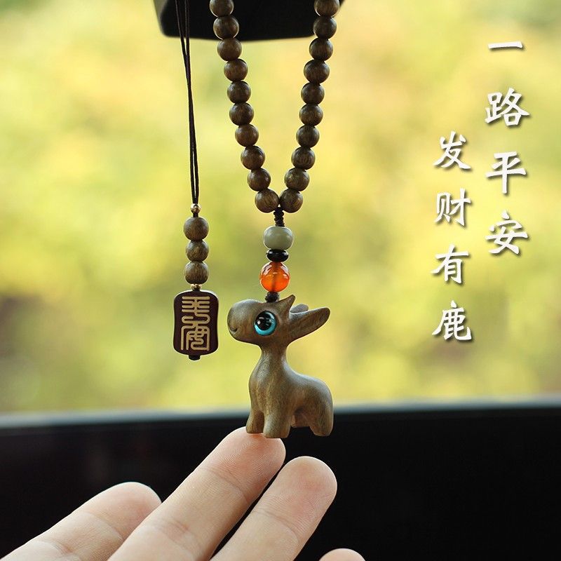 一路檀木小鹿自動車バックミラーストラップ車内装車載ペンダント男女創意ペンダント