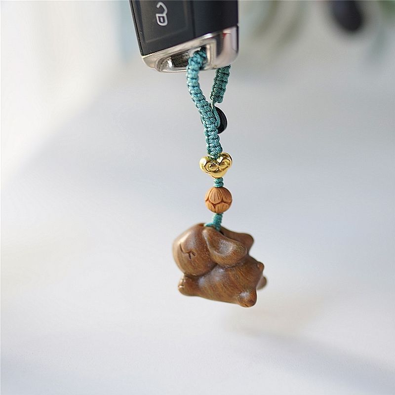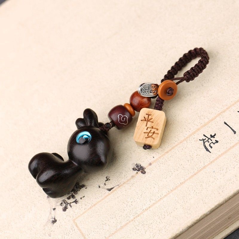 ジョー/ランニングウサギ檀木ストラップウサギ飛猛進カップルキーホルダー原木卯兎年プレゼント
