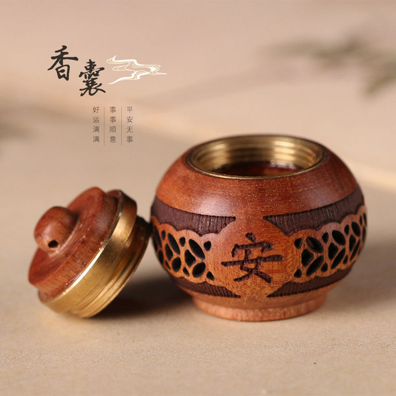 新商品の赤い貴重な宝の香嚢の木の彫刻の部品は香薫の香炉の透かし彫りの花の香嚢のボールを飾ります。
