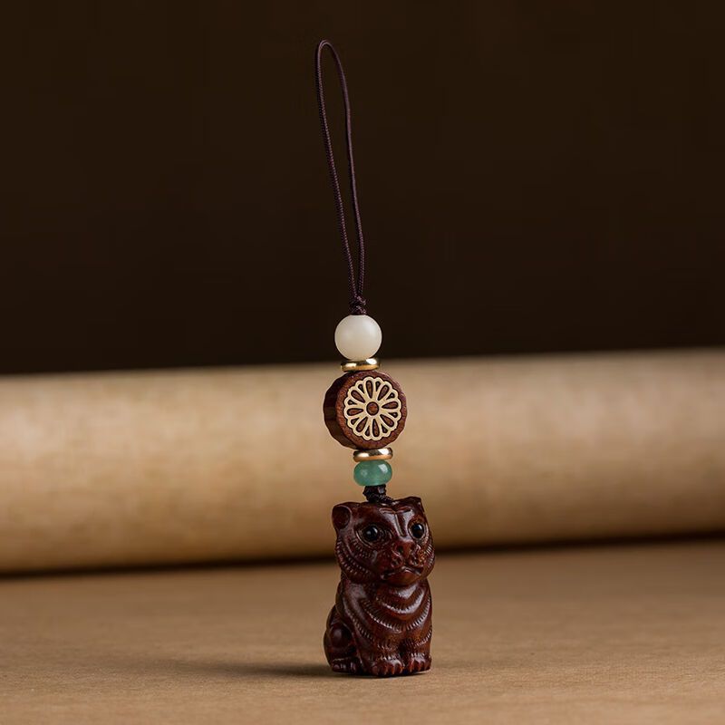 日礼万送虎年黒檀木虎自動車キーホルダーストラップストラップ男女誕生日プレゼント