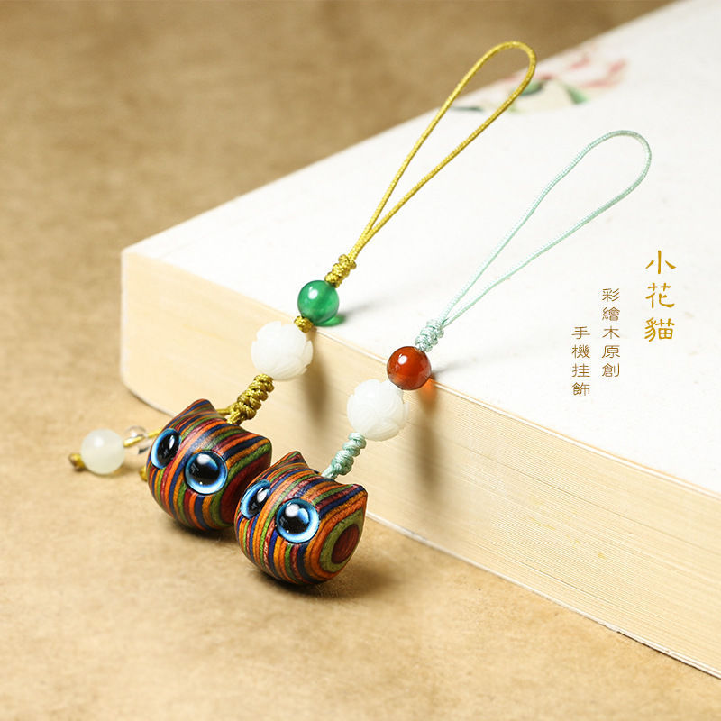 クリエイティブな絵の木の携帯チェーンのカバンのペンダントの猫のペンダントの車のキーホルダーのかわいい子猫の携帯チェーンの女性