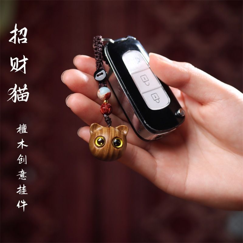 個性的な創意黒檀紫檀木カバンは猫の車のキーホルダーが可愛いです。