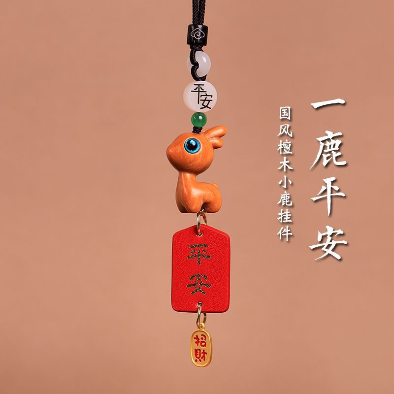 一路檀木小鹿車載自動車ストラップ車内アクセサリーストラップ2023新作