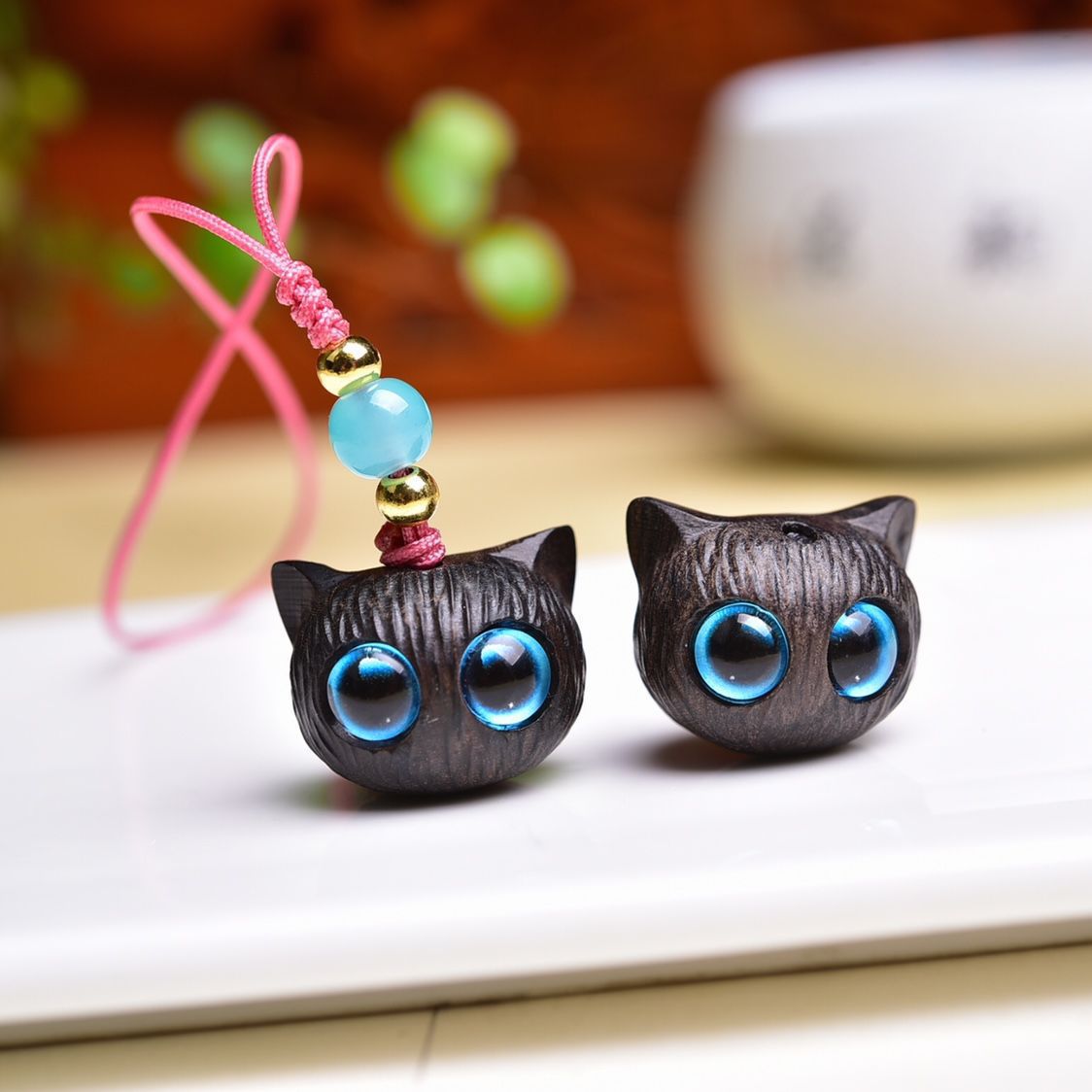 黒檀木の子猫の携帯チェーンが可愛いです。
