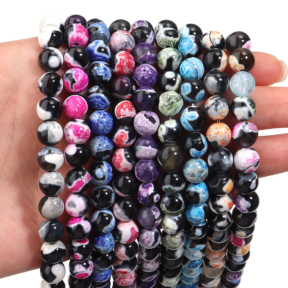 品質の良い白黒の2色の炎の瑪瑙のビーズの天然のdiyの炎の瑪瑙のビーズのネックレスの部品を精選します。