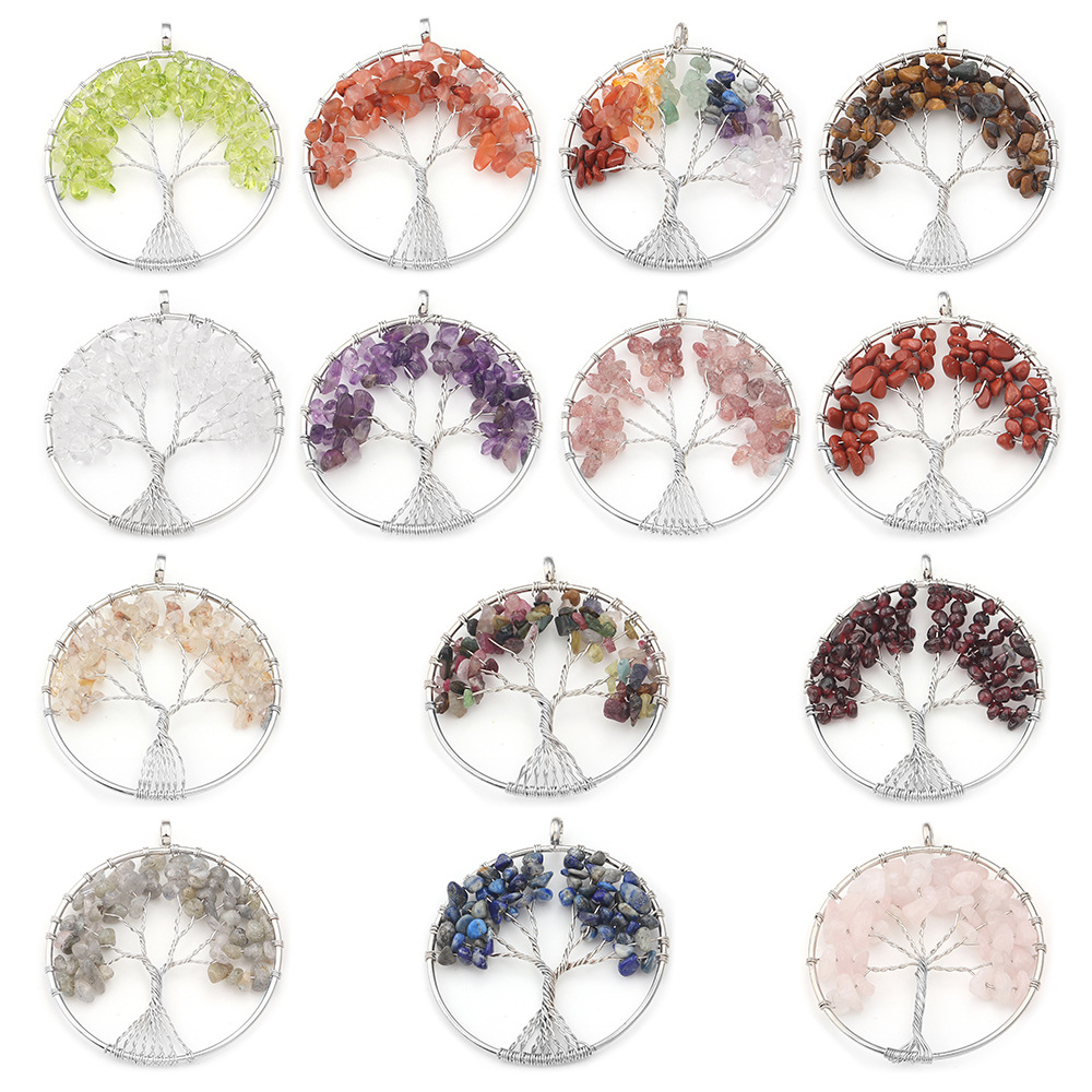 天然石砂利クリスタルライフツリーペンダント手作り DIY インレイ織りラウンドハート型イヤリングネックレスペンダント