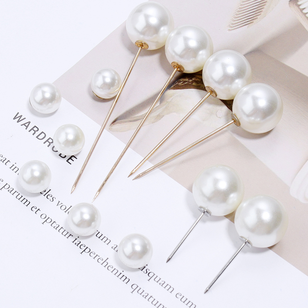 米白色模造真珠ブローチピンdiy真珠ブローチアクセサリー材料