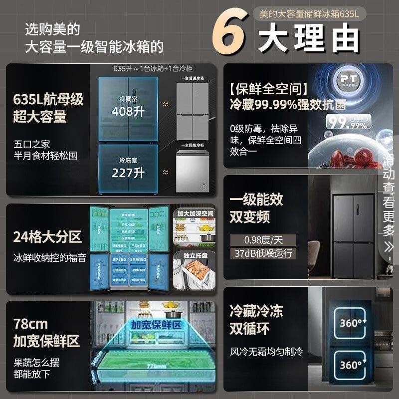 美冷蔵庫635リットルエネルギーインバータ十字門家庭用スマート冷蔵庫空冷無霜666冷蔵庫