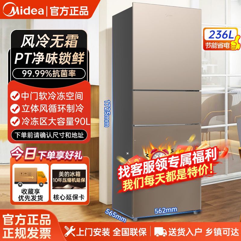 海信239L三門エネルギー効率冷蔵庫省エネ風冷無霜インバータBCD-239WYK1DPS
