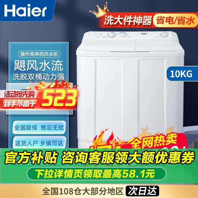 ハイアール洗濯機家庭用10kg大容量旧式半自動賃貸二桶波輪洗い出し分離628S