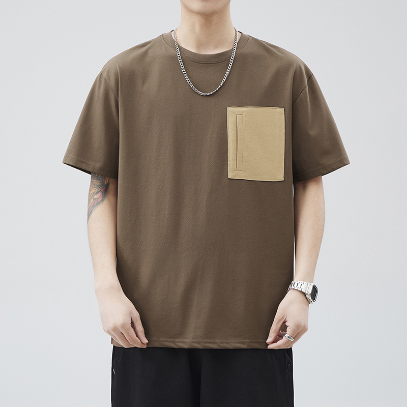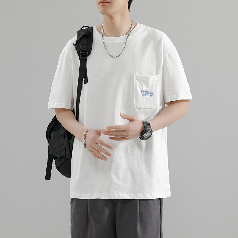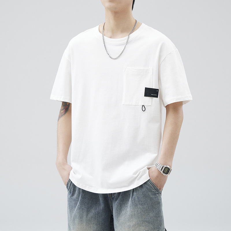 アイスシルク半袖 Tシャツメンズ夏の新しいメンズラウンドネックポケット装飾パーソナライズされた若者多用途カジュアルトップトレンディ