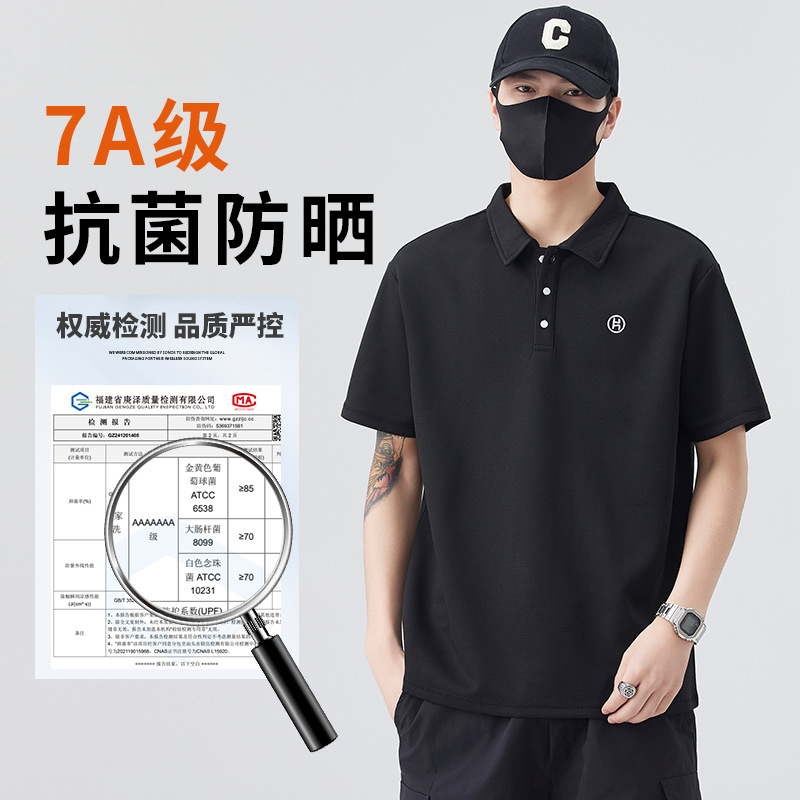 氷糸半袖poloシャツ男2025夏の新型襟付き青年insファッションカジュアル百合品質上着