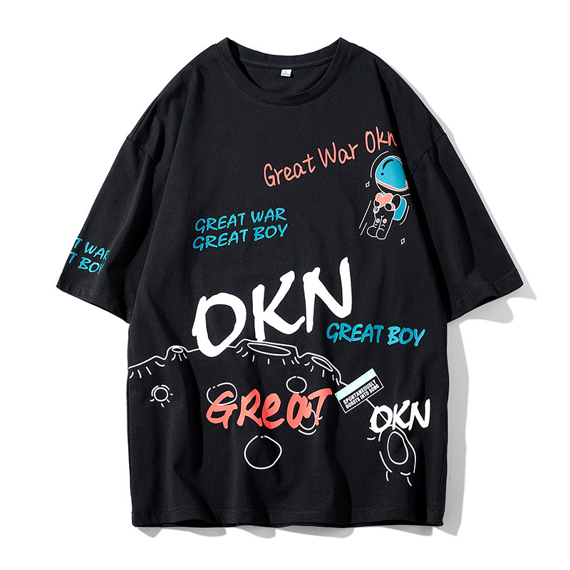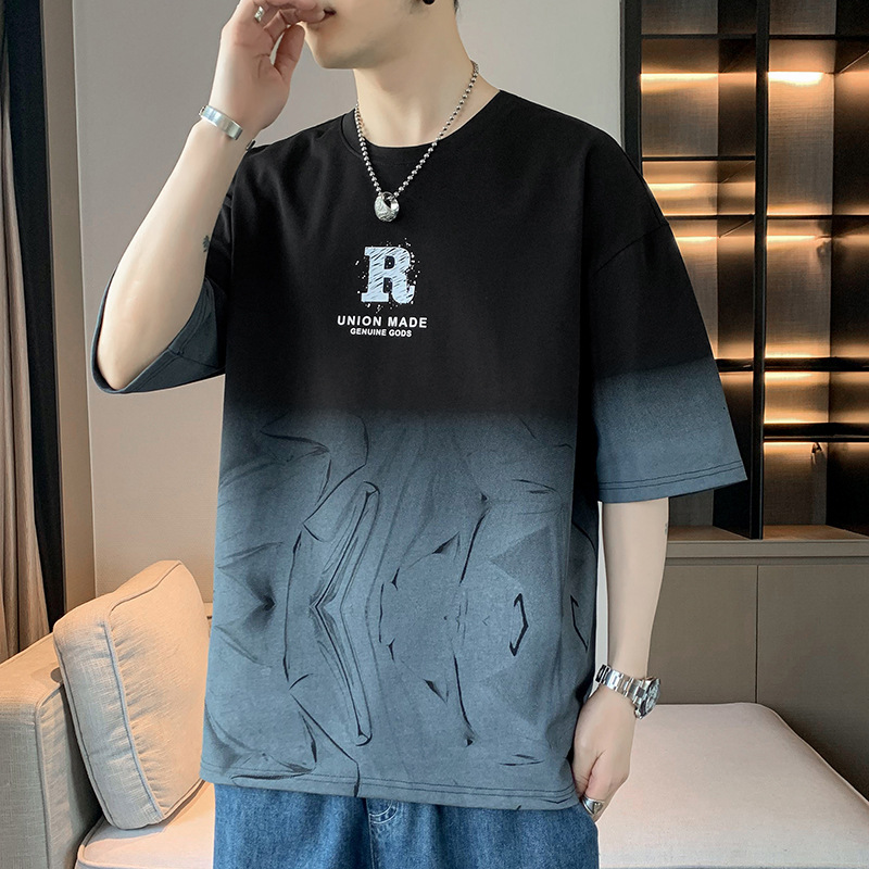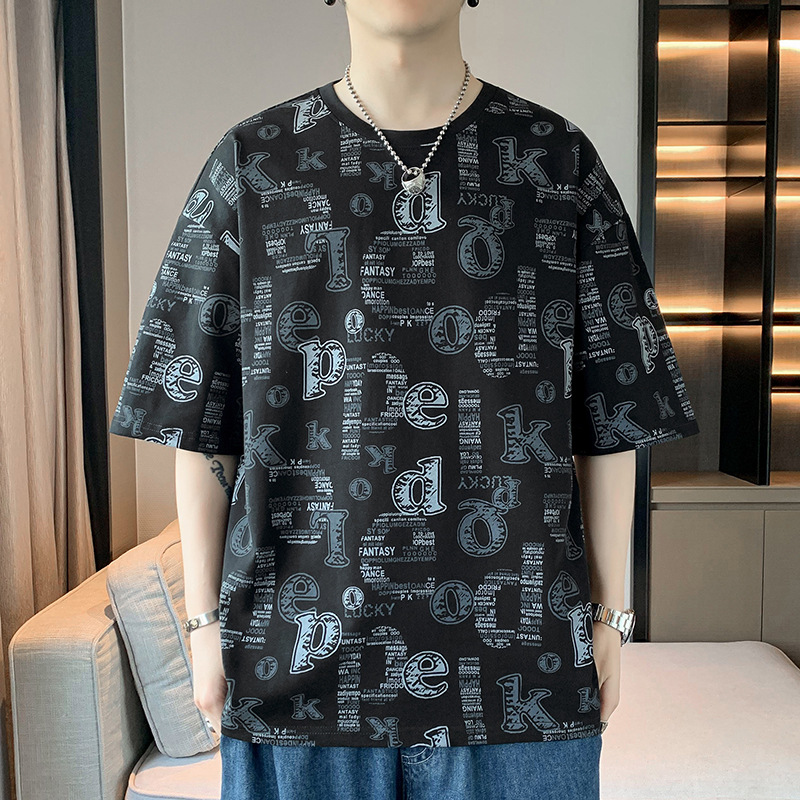 純綿半袖 Tシャツメンズレター夏新作メンズラウンドネック青少年学生多用途ファッションカジュアルトップ
