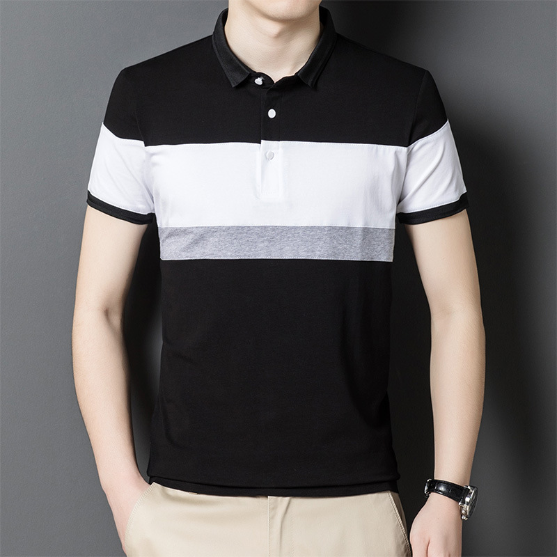 半袖poloシャツ男2025夏の新型修身ビジネス高級純綿色合わせ青年tシャツカジュアル百合