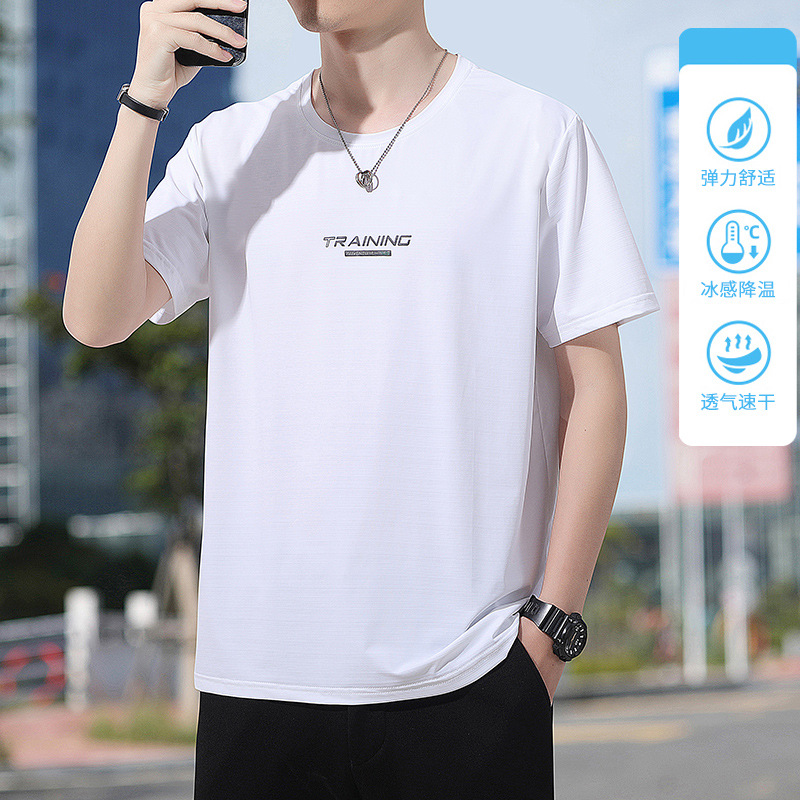 2025夏の新型氷糸半袖男性大サイズファッション百合竹節紋tシャツアウトドアスポーツ速乾潮