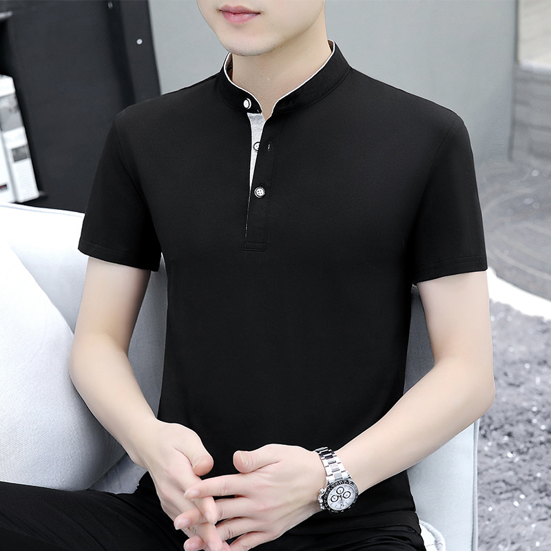 ピュアコットン半袖ポロシャツメンズ2025夏新作スタンドカラーユースイントレンドカジュアル万能無地トップ